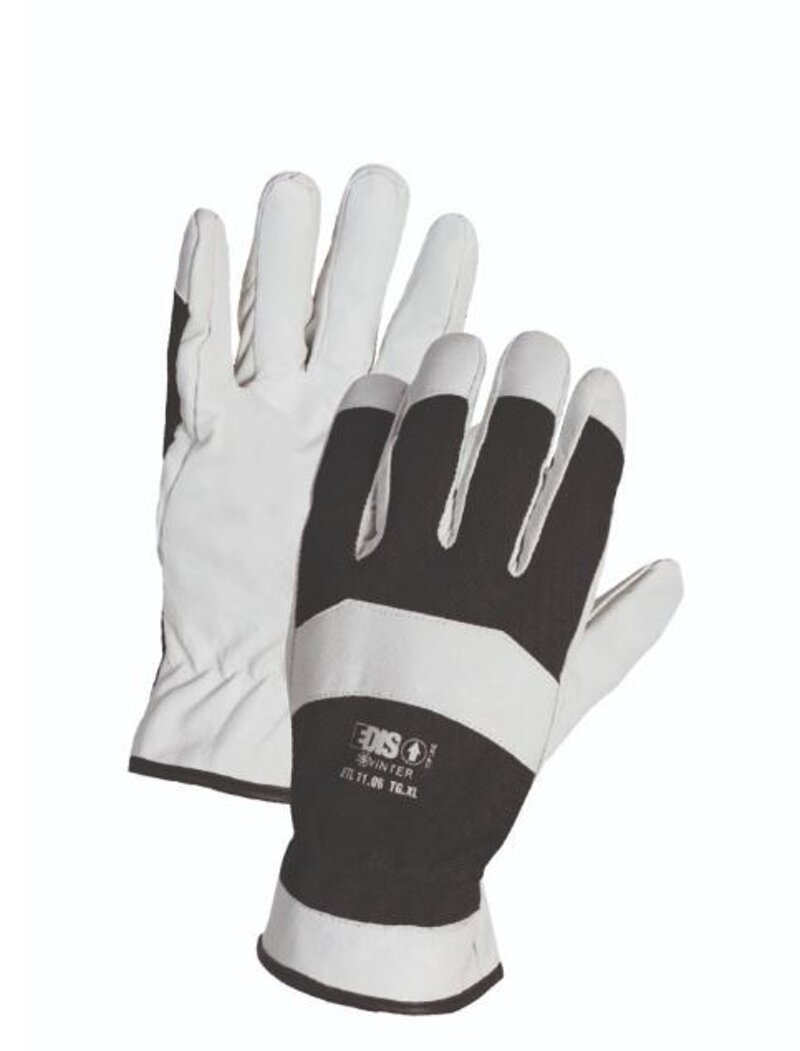 Guanto in pelle suina bianca e tessuto impermeabilizzato stretch nero, imbottitura interna in thinsulate® elastico stringipolso